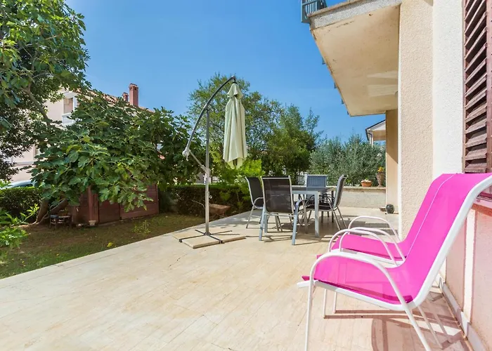 Pula je od ubytování vzdáleno 15 km. Součástí je i přístup na terasu s výhledem na zahradu.